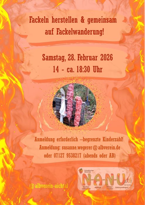 Anmeldung: susanne.wegerer@albverein-aichtal.de oder 07127 9538217 (abends oder Anrufbeantworter)